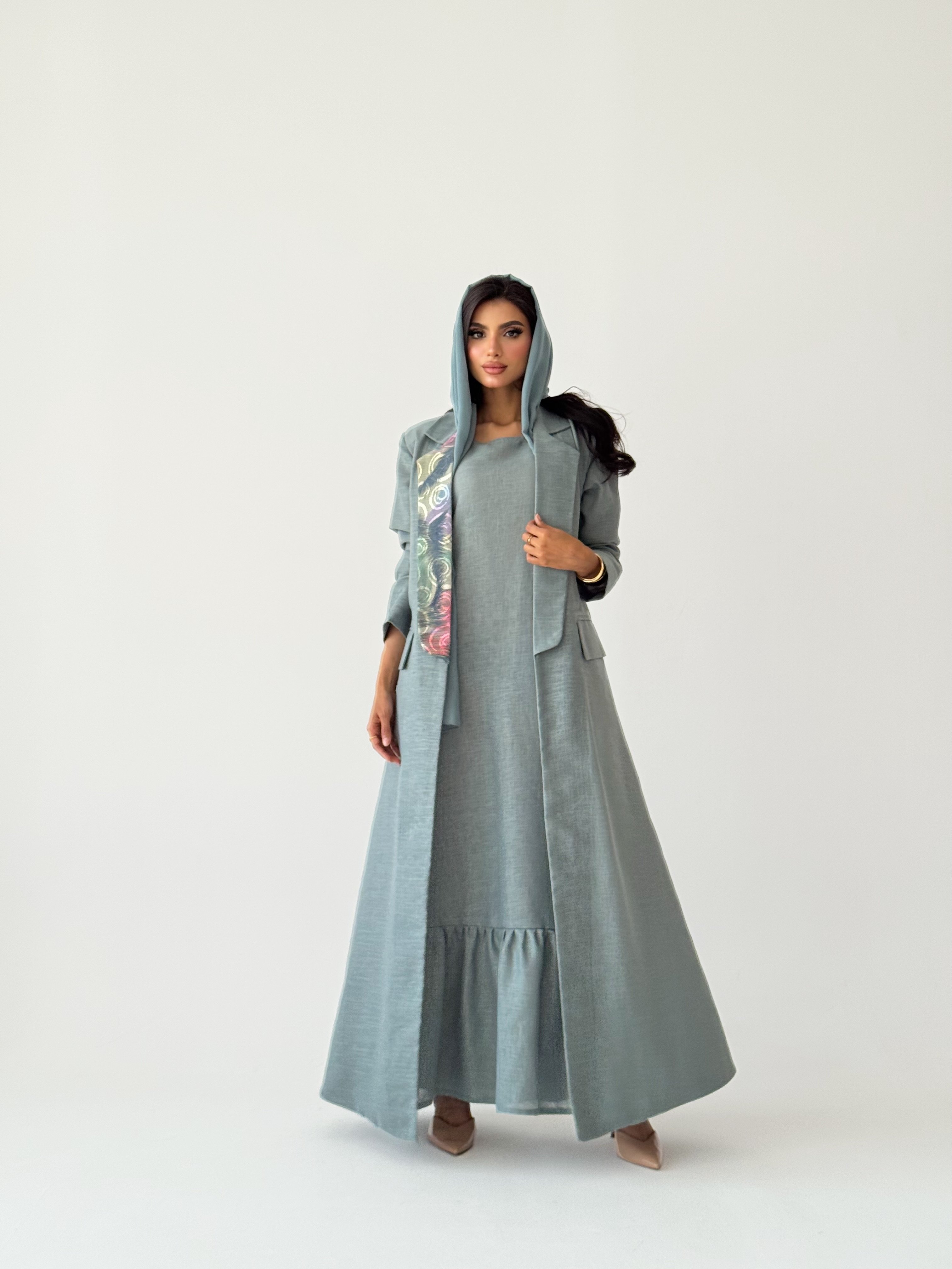 تـفـاصـيـل الـفـسـتـان / قـمـاش لـيـنـن ، بـتـصـمـيـم انـسـيـابـي انـيـق مـزود بـكـسـرات سـفلـيـة فـي الـاسـفـل